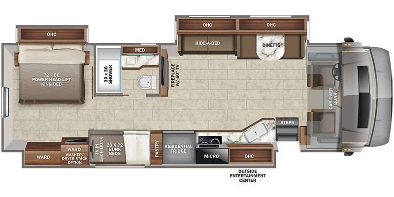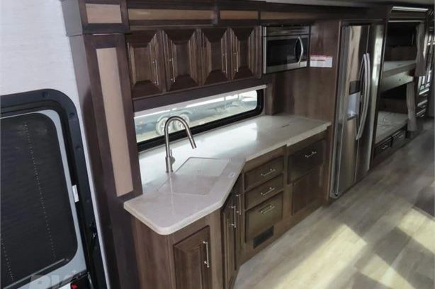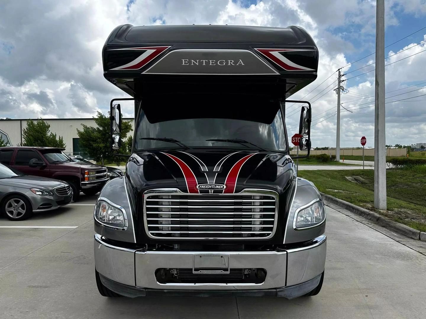 This 40' Entegra Accolade 37L is a Super Class C RV rental that boasts a multitude of impressive features and specs. It‘s built on a reliable Freightliner chassis that provides a smooth and stable ride, it’s powered by a robust Cummins ISB 6.7-liter diesel engine that delivers 360hp and 800 lb-ft of torque. Inside, the Accolade 37L is a spacious and luxurious home on wheels. It has a full kitchen with top-of-the-line appliances, including a residential refrigerator, microwave oven, and a two-burner induction cooktop. The living area is equipped with a luxurious sleeper sofa, the entertainment center features a large LED TV with a premium sound system, and the built-in fireplace keeps you nice and cozy. The master bedroom in this Accolade 37L is a sanctuary of comfort and relaxation. It has a queen-sized bed with a memory foam mattress, a large wardrobe closet, and a dresser with a smart HDTV. The twin bunk beds each with a built-in HDTV and headphones. The bathroom is well-appointed, with a glass door shower, and a solid surface countertop with an integrated sink. Other impressive features of the Entegra Accolade 37L include a 12-foot power awning with LED lights, an outdoor entertainment center, an Onan 8,000-watt diesel generator, and a push button hydraulic leveling system. With its combination of power, luxury, and functionality, the Accolade 37L is the ultimate Super Class C RV for the discriminating traveler.